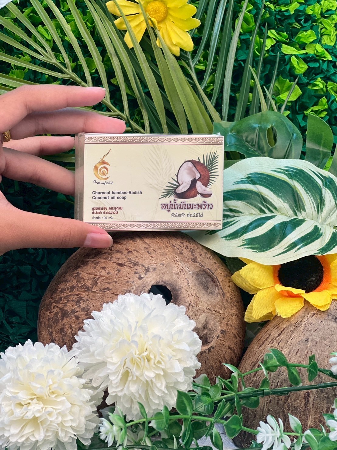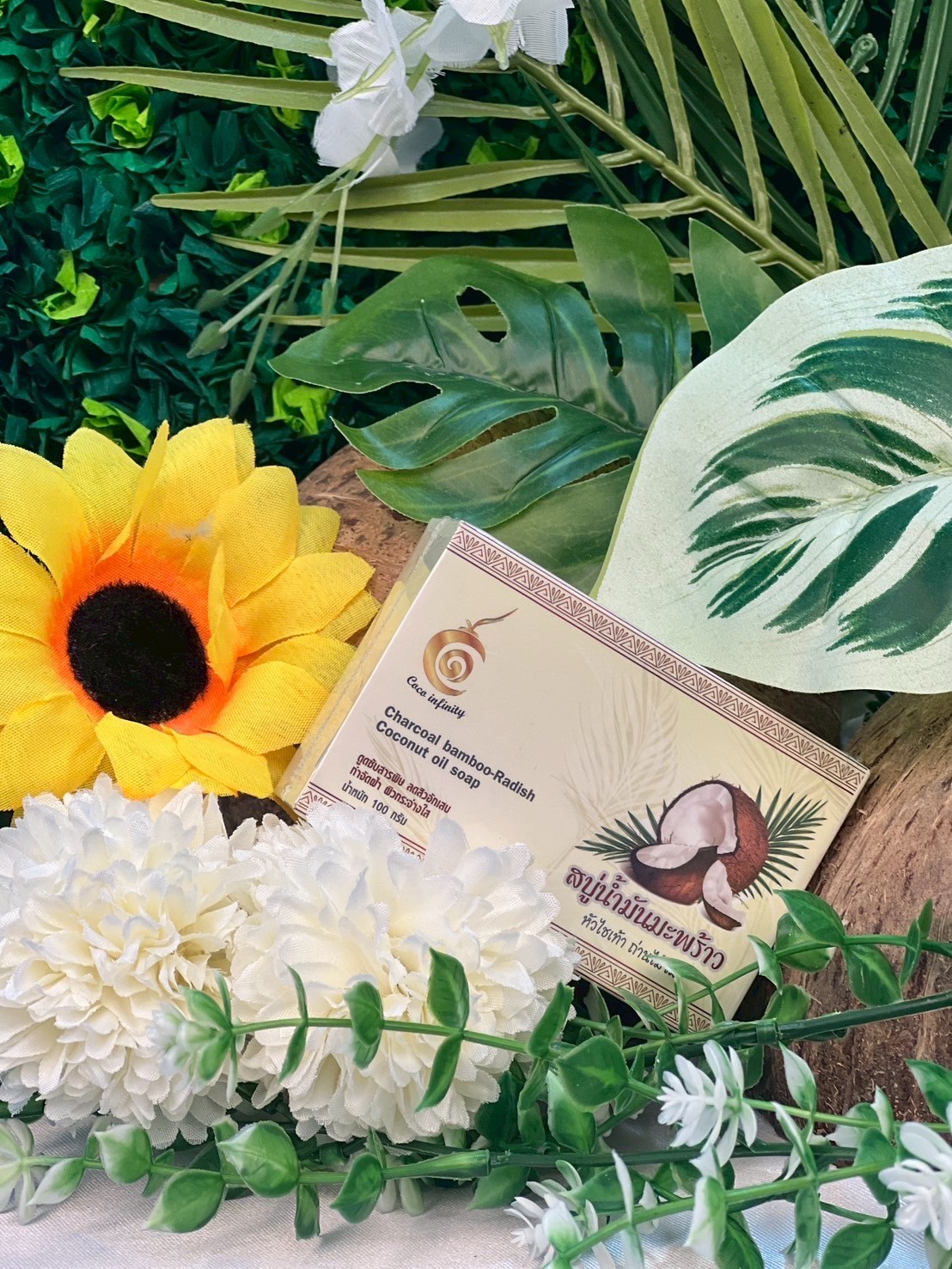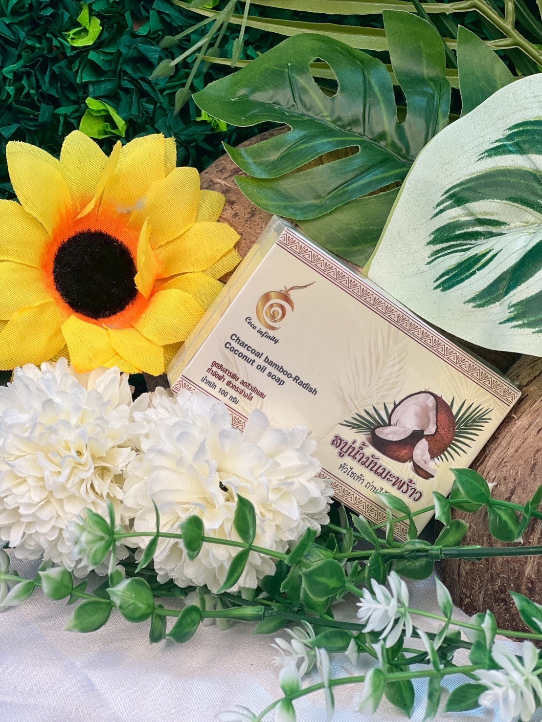 สบู่น้ำมันมะพร้าว หัวไชเท้า & ถ่านไม้ไผ่